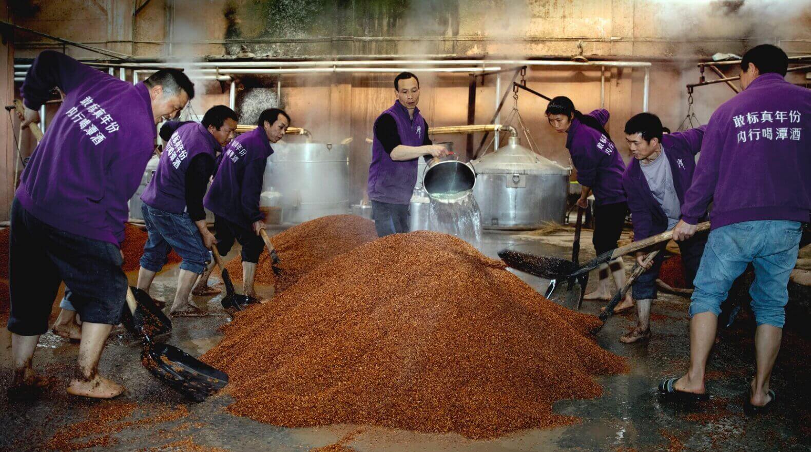 醬香型白酒在釀造時需要保溫保潮,溫度升高到60-65℃時需要進行翻倉,如果低于這個溫度,會影響酒曲的香味,導(dǎo)致白酒發(fā)酵節(jié)奏出現(xiàn)問題,影響醬香。好的醬香白酒,如茅臺、潭酒這些,都采用的是坤沙釀造,也就是我們??吹降?2987工藝,這樣的白酒從釀造到出廠一般都要5年。