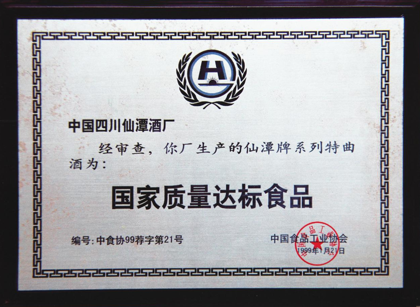 潭酒生產(chǎn)的仙潭牌系列特曲酒被中國食品工業(yè)協(xié)會(huì)認(rèn)定為國家質(zhì)量達(dá)標(biāo)食品